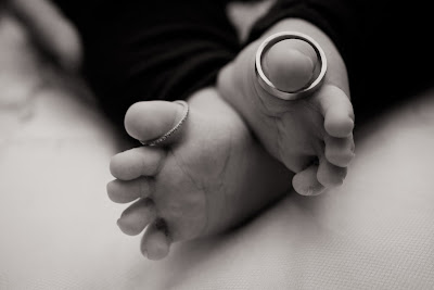 As you know, I specialize in creating custom pieces - from engagement rings and wedding bands to pave diamond earrings, delicate pendants, and one-of-a-kind bracelets, all environmentally-kind in my production and using recycled gold and silver. (All my diamonds are obviously conflict-free.) Working so intimately with clients to create the perfect piece, I often feel a genuine connection with them; they quite often share images of their Tula Design jewelry with me once it's officially become a part of their world. Here's a beauty I'd love to share - a client's engagement and wedding ring, draped on the feet of their newborn babe! Too adorable.